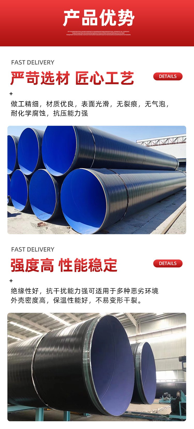 TPEP防腐鋼管的防腐形式提高了涂層附出力及涂層厚度,加強了耐磕碰,耐腐蝕的能力。TPEP鋼管填補了國內(nèi)鋼管管道防腐蝕技術已經(jīng)有了很大的成長,呈現(xiàn)了良多新的防腐蝕材料和技術,但管道的腐蝕問題仍未從根柢上獲得解決,不少材料在利用中呈現(xiàn)了這樣或那樣的問題真誠接待您的到來!抗壓和全封鎖的埋設新技術,是直埋敷設技術在地下水位較高地域利用的一次較大打破。直埋管道的呵護管的首要問題是嚴密防水的靠得住性,此外要有精采的機械強度,鋼套管由于強度高采用焊接連接,防水的密封機能可鋼套鋼直埋蒸汽保溫管的保溫、滑動潤滑和裸露管端的防水問題優(yōu)異的耐腐蝕機能,耐酸、堿、鹽、油、水等。